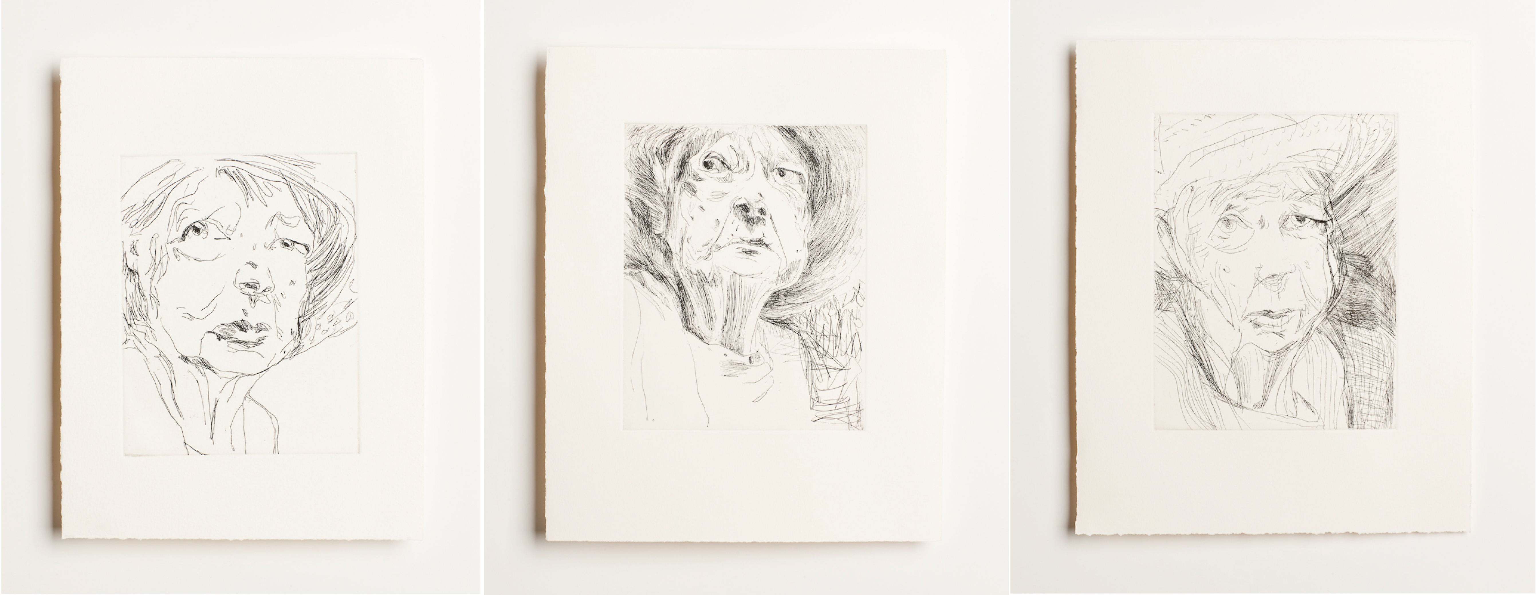 (Ben Quilty’s etchings of Margaret Olley courtesy of Jan Murphy Gallery)